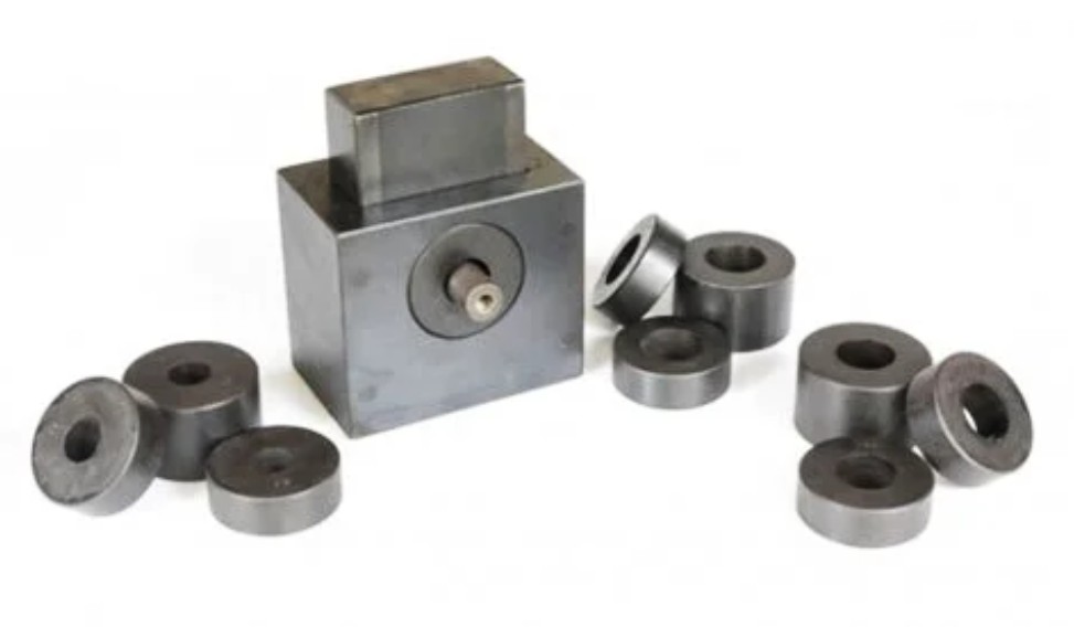 1. Shear testing attachment for round metallic specimen with complete set of dies for